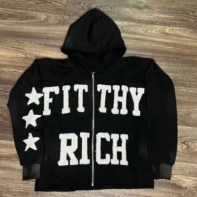 Logo personalizzato abbigliamento di strada ricamo in difficoltà cerotti lavaggio acido sole sbiadito cerniera tagliata felpa con cappuccio per uomini